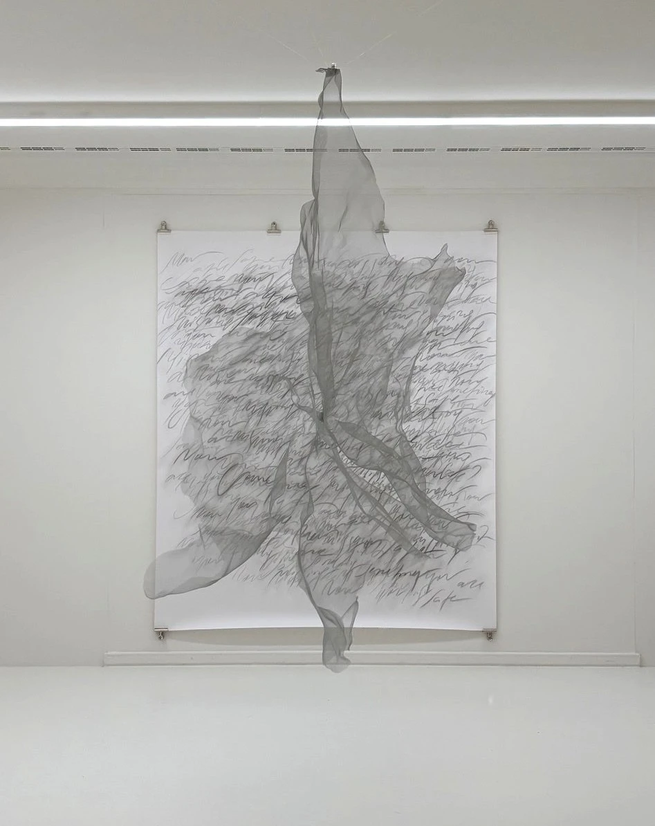 Paper work: Duality. Between Words The starting point for this piece is a shared experience between two refugees, Majed and myself. Both of us carry the trauma of war: hiding in bomb shelters, running for survival, and ultimately making the same devastating choice — to leave our families behind in order to save our own lives, to hold hope for a better future. Safety comes at the cost of connection, leaving us suspended between two realities: one of new beginnings in a safe environment, and another of loss, distance, and uncertainty. From Majed’s story, I selected fragments of his text and phrases from our conversations that resonated deeply: “You are safe now” and “Something is missing.” These words embody a duality — the relief of survival and the emptiness of absence. If you imagine these scripts written chaotically in a diary, then rearranged and questioned, they form shifting meanings: “Are you safe? Are you missing something? Is something missing? Now something is missing.” Like diary entries, they hold both sorrow and resilience, dissolving into images made of words — words that sometimes fade, sometimes transform.