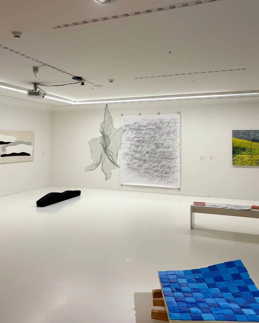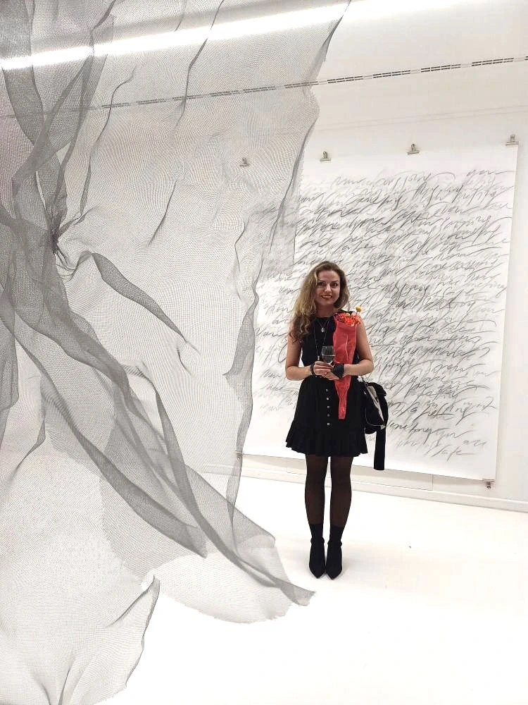 Installation: Duality. Between Worlds The second work continues this exploration of duality. A delicate metal net embodies fragility and resistance at once — its shining fragments recall fleeting moments of beauty and hope, yet its form is bent and marked by trauma. Suspended between parallel realities, the piece reflects the constant tension of exile: joy mixed with sorrow, presence shadowed by absence. This duality of situation — the safety of a new home and the pain of separation — defines our present. Every moment of happiness carries the weight of what cannot be shared with loved ones left behind, in places we may never return to. It holds both hope and loss, never fully one, never fully the other.